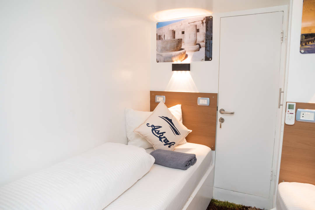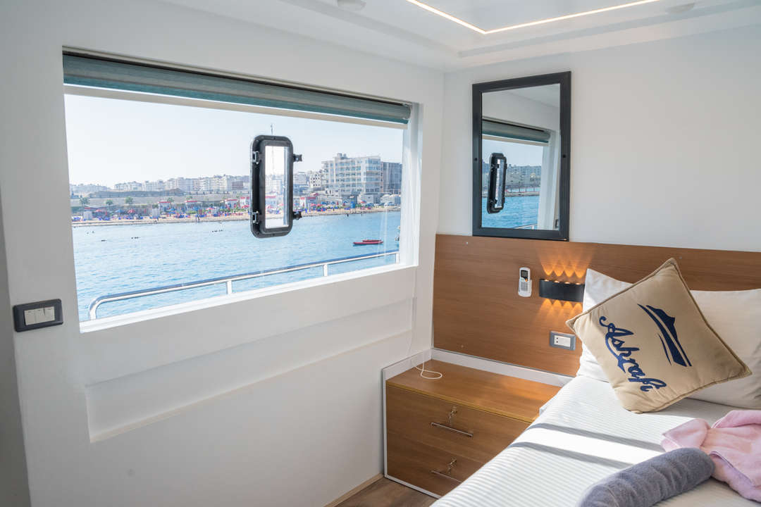 The Ashrafy liveaboard is a steel-hulled Red Sea vessel designed for adventure, comfortably accommodating up to 24 guests across 12 twin, air-conditioned ensuite cabins. Built with divers and kitesurfers in mind, the Ashrafy blends comfort with functionality. Safety is a top priority, with internationally certified instructors, rescue boats, and comprehensive first-aid protocols ensuring peace of mind throughout the journey.