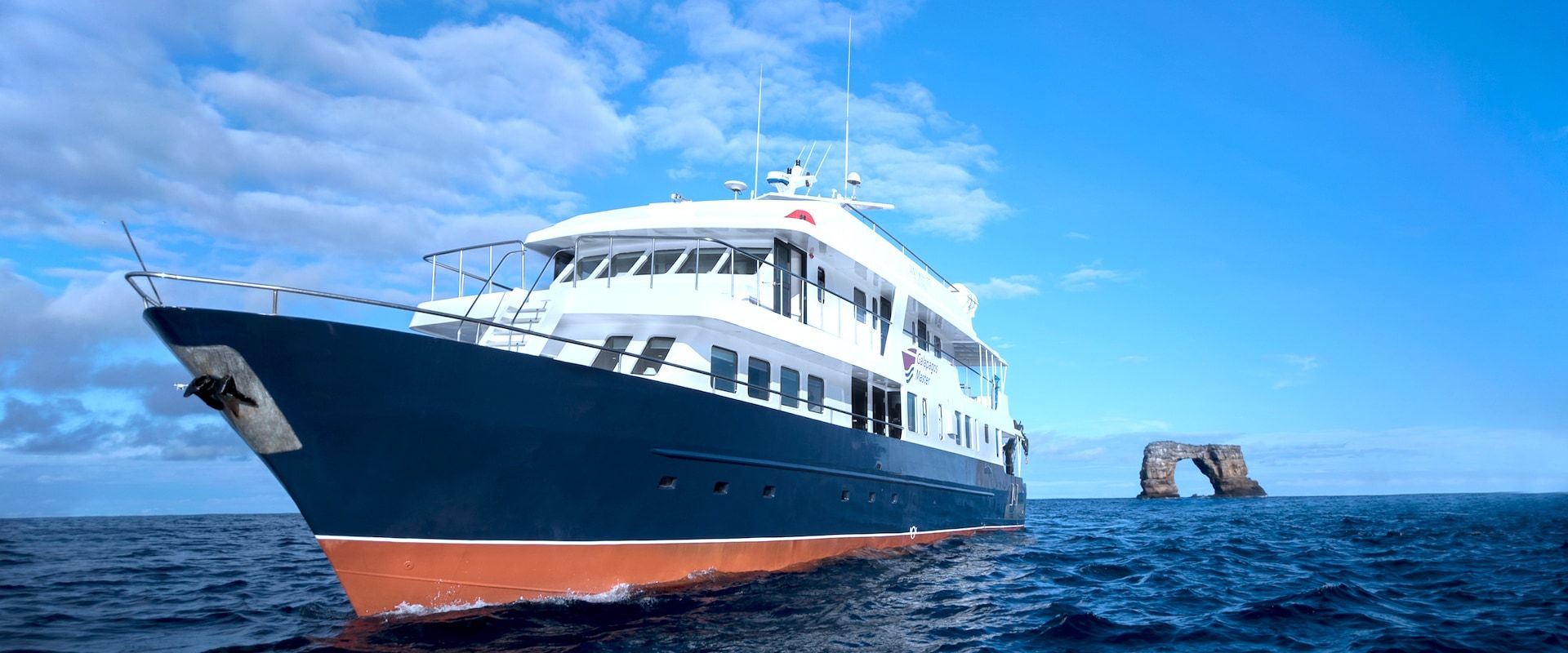 Discover the plethora of fascinating marine life in the Galapagos onboard the Galapagos Master. Sites visited include Darwin Island, Wolf Island, Punta Vicente, and Cabo Douglas. Eight cabins accommodated 16 guests. Each cabin has air conditioning and a private bathroom. There's an indoor lounge, dining area, sun deck, and observation area. The lower-level dive deck has personal gearing-up stations, camera rinse bins, and plenty of storage space. There are also two bathrooms to rinse off before going to your room.