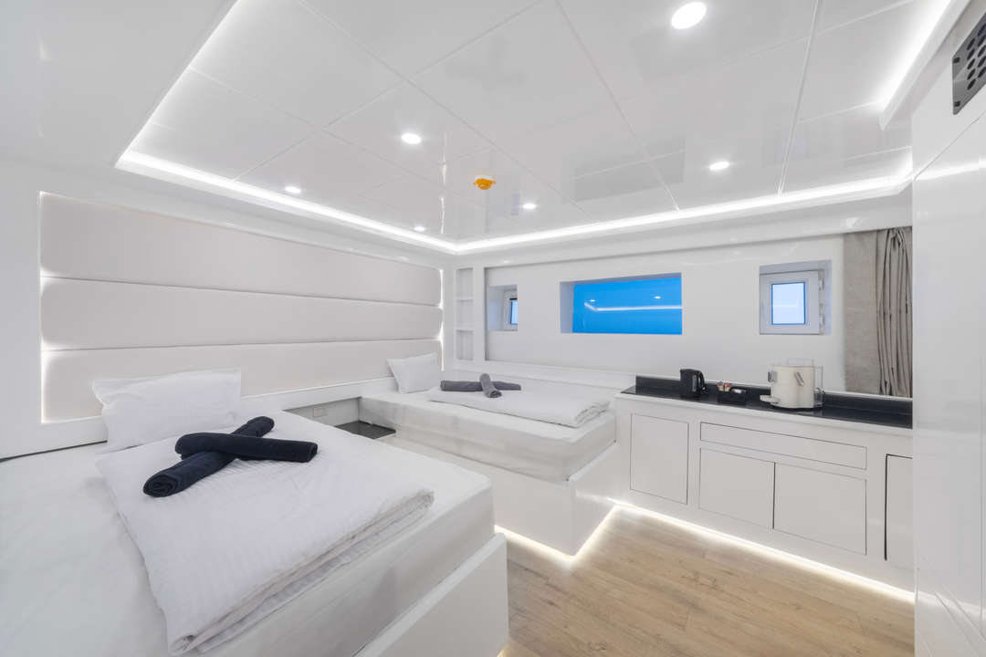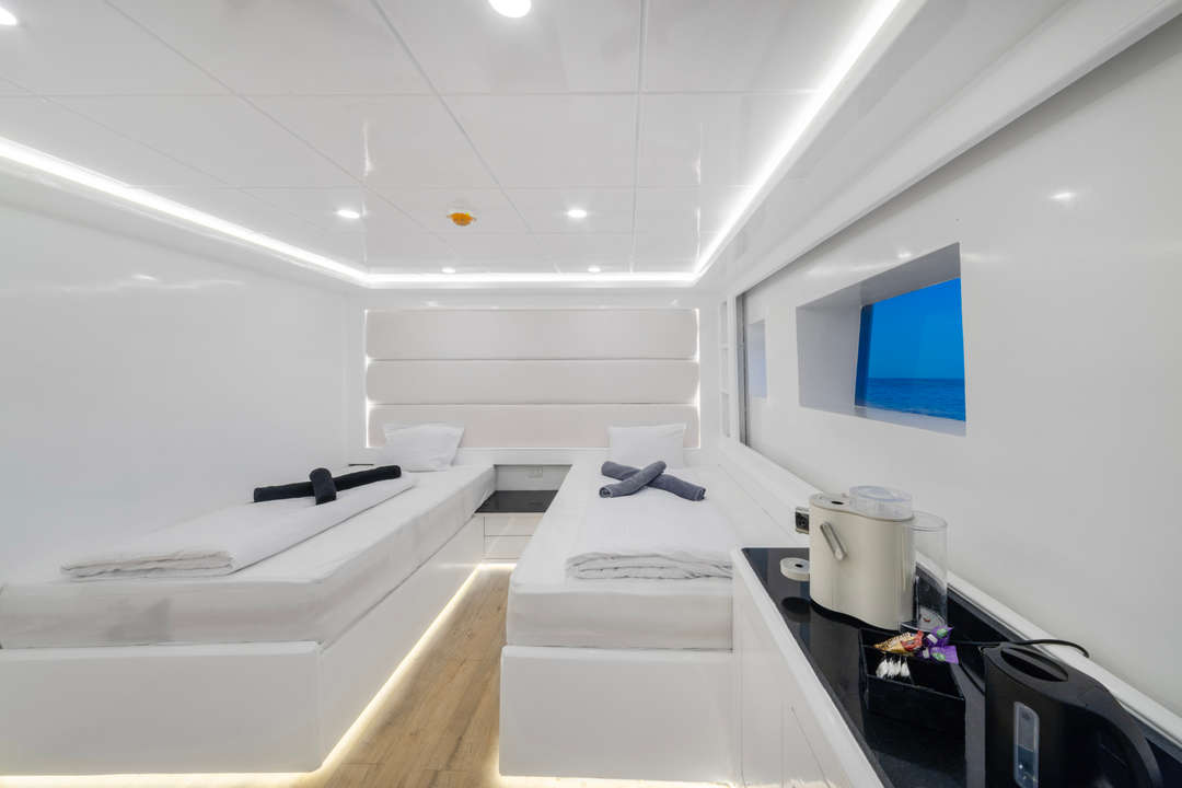 The Yachtiano is a 45.5-meter/149-foot-long liveaboard that takes 34 passengers on scuba diving adventures in the Red Sea. Features of the Yachtiano include 17 air-conditioned cabins, Wi-Fi, and Nitrox availability for enhanced diving. With an impressive array of safety equipment, including two life rafts, medical oxygen tanks, and first aid kits, guest safety is a priority. Eat, sleep, dive, and relax as you explore the underwater wonders, doing up to 4 dives a day.