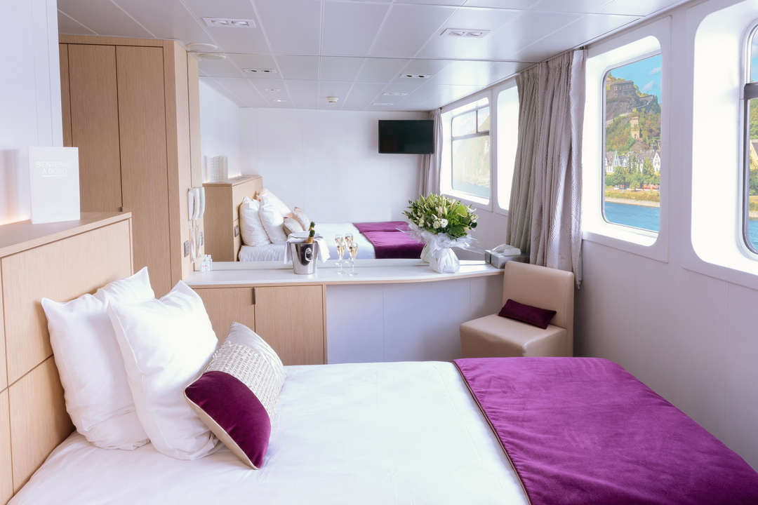 El Lafayette es un crucero fluvial que acomoda hasta 82 pasajeros en 43 cabinas dobles e individuales. Cada cabina cuenta con comodidades modernas, como aire acondicionado, minibar, TV, wifi y baño privado. El barco combina un diseño contemporáneo con una paleta cálida de tonos grises, arena, malva y lila para crear un ambiente elegante y relajante a bordo.