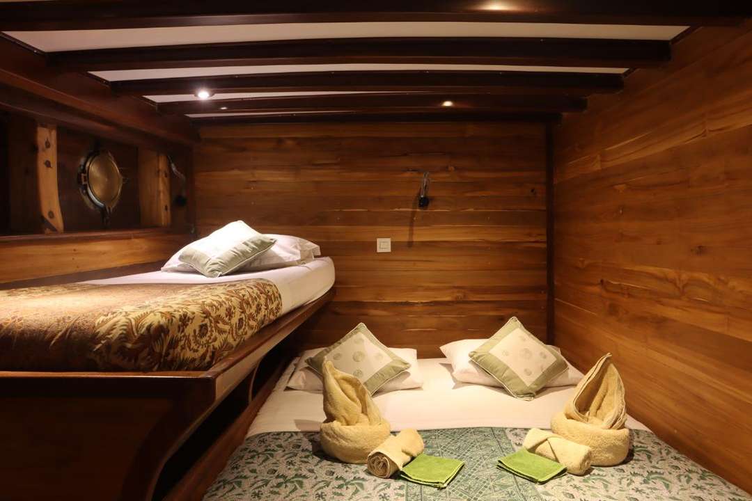 Il Wellenreng, lungo 25 metri (82 piedi), è una barca da crociera in legno Phinisi che offre un'esperienza di immersione intima per un massimo di 6 ospiti (fino a 9 con bambini) in sole 3 cabine spaziose. Le sistemazioni includono una grande cabina armatoriale con letto king size e 2 cabine con letto queen size, ciascuna dotata di un letto singolo aggiuntivo, aria condizionata regolabile autonomamente, bagno privato con doccia calda, accappatoi, articoli da toeletta, cassaforte, scrivania e luci di lettura. Costruita nel rinomato villaggio di costruttori navali di Tanah Beru, in Sulawesi, la Wellenreng combina la tradizionale maestria artigianale del legno di ferro con interni in teak.