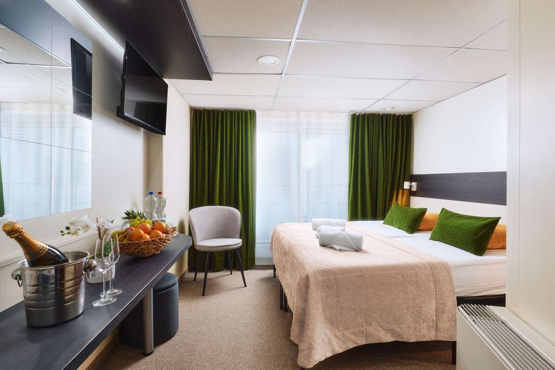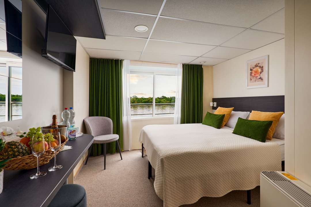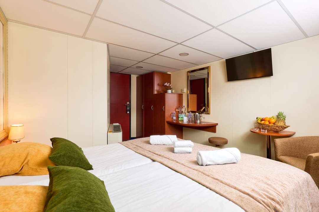 Fidelio is a river cruise ship offering a refined experience for up to 146 guests across 3 decks. The vessel features 73 exterior cabins, each approximately 14 m² in size and equipped with satellite TV, a safe, air conditioning, and en-suite bathrooms. Guests on the Main Deck enjoy panoramic windows, while those on the Upper Deck have French balconies. Select Upper Deck staterooms include bathtubs.