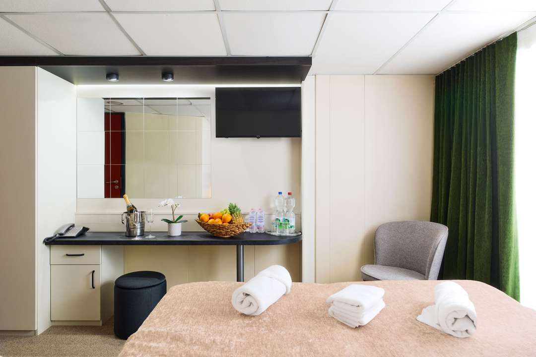 Guests can unwind in the wellness area with a sauna, jacuzzi, fitness room, and even a small swimming pool. Enjoy panoramic views while dining in the elegant onboard restaurant, where all meals are served, or relax in one of the ship’s 3 stylish bars. The Sun Deck is a favorite social hub.
