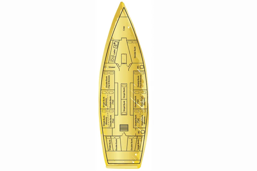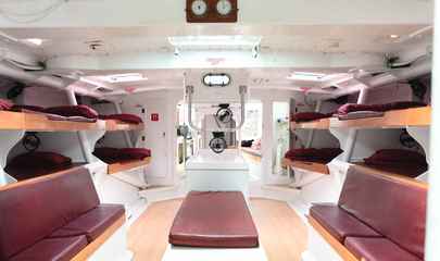 コンドル・ウィットサンデーズは、ホワイトヘブンビーチの粉雪のような白砂とウィットサンデー諸島の縁辺サンゴ礁を探索する素晴らしい方法です。この大型マキシレーシングヨットには、船内にダブルベッドとシングルベッドが混在しています。これらは全て共有のドミトリースタイルのオープンプランルームです。最低乗船人数は10名、最大30名です。オーシャンレーサーヨットは瞬く間にウィットサンデー諸島へ航行するため、息をのむような島々や展望スポット、シュノーケリングポイントを探索する時間がより多く確保できます。船内での2泊分の宿泊には、デッキ下の快適なドミトリースタイルの共有宿泊施設が含まれます。