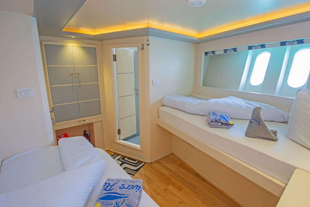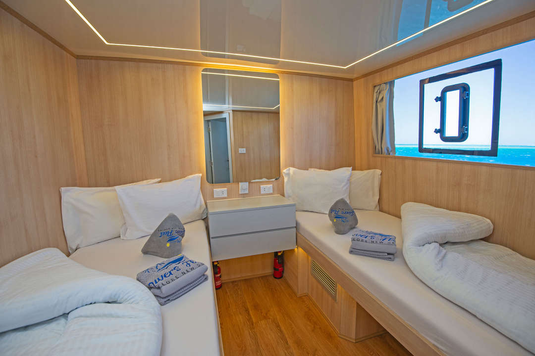 38メートルのモダンでコンテンポラリーなドルチェヴィータライブアボードサファリボートは、年間を通して紅海でのダイビングを提供します。2018年に完全改装され、12のキャビンに24人のゲストを収容します。各キャビンにはエンスイートバスルーム、収納スペース、エアコンが完備されています。共用エリアには明るい室内のダイニングルーム、サロン、バーがあります。上部デッキにはオープンエアのサロンとバーがあり、紅海での素晴らしいダイビングの後にリラックスするのに最適です。最上部デッキにはさらに屋外ラウンジとサンデッキがあり、ダイビングの合間に日光浴を楽しむことができます。