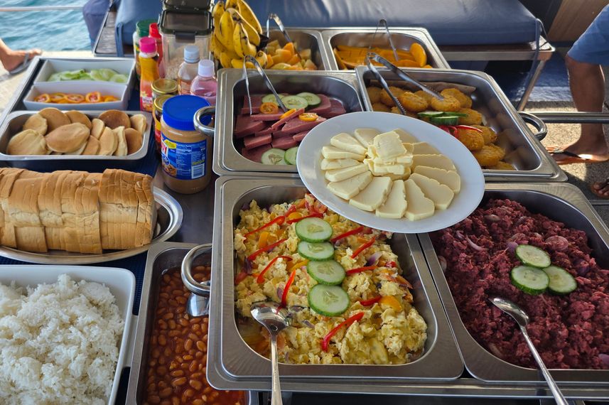 - ダイビングガイドはプロフェッショナルです。これは予算のライブアボードですが、サービスは良く、乗組員はフレンドリーで思いやりがあります。食べ物の選択肢は多くありませんが、私たちにとっては十分です。