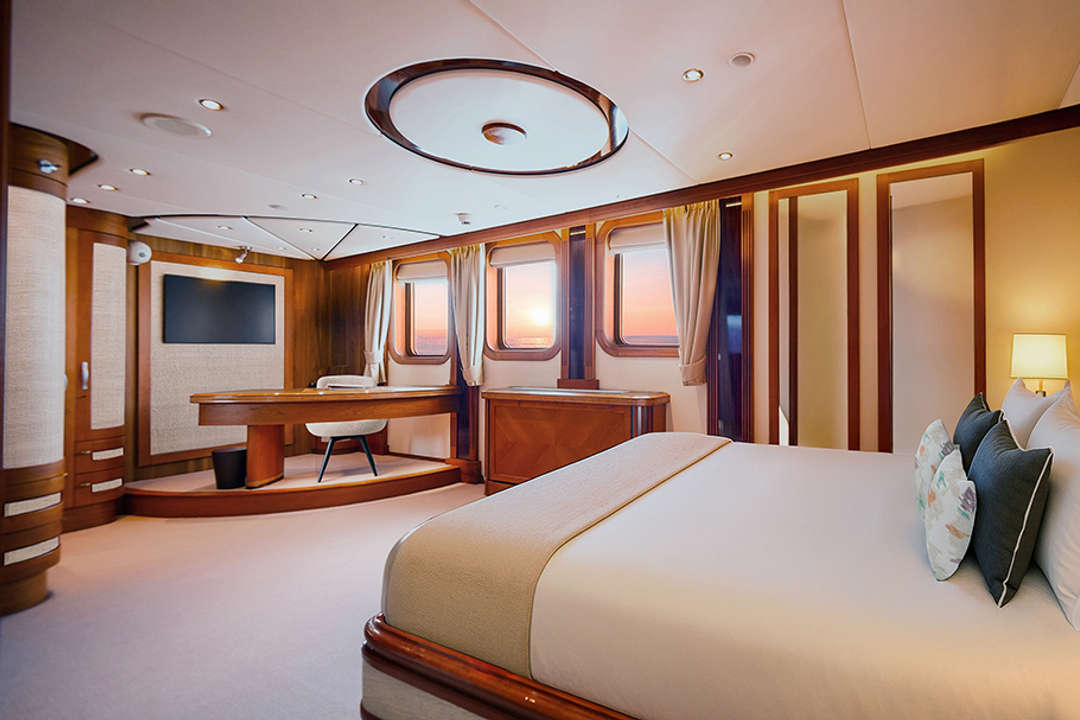 Accommodating just 30 guests across 15 beautifully designed cabins, Aqua Lares delivers an intimate superyacht experience. The vessel features 3 Owner’s Suites alongside a selection of guest cabins, each individually styled with warm wood finishes, refined Italian textiles, and custom furnishings. All cabins include ensuite bathrooms with walk-in rain showers, air-conditioning, organic bath amenities, and safes.
