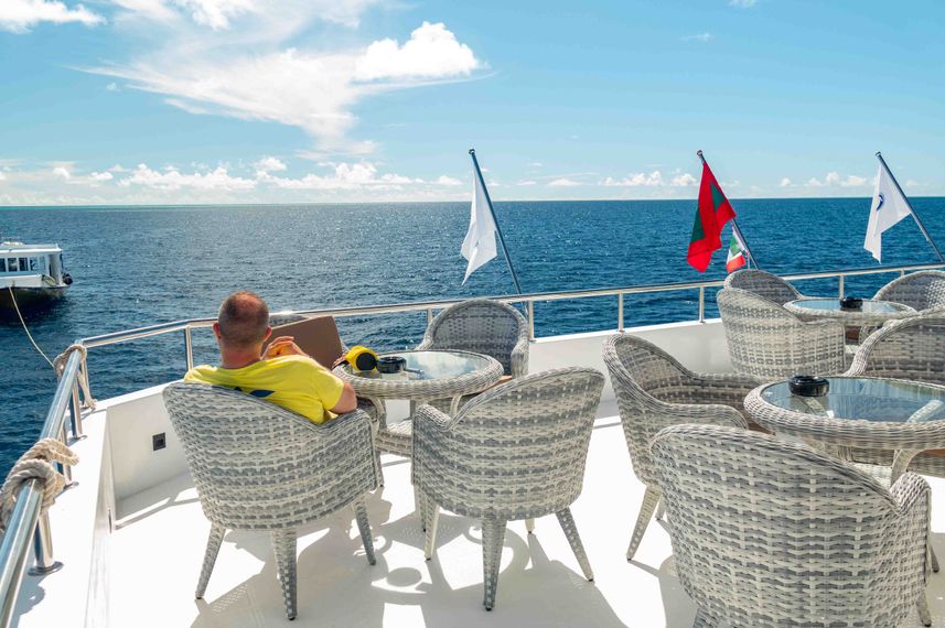 - 날씨와 손님에 맞는 다이빙 장소. 원활한 의사소통 및 다이빙 브리핑². 신혼 여행을 위해 우리 방을 장식하고 다이빙 중 서프라이즈도 제공했습니다.