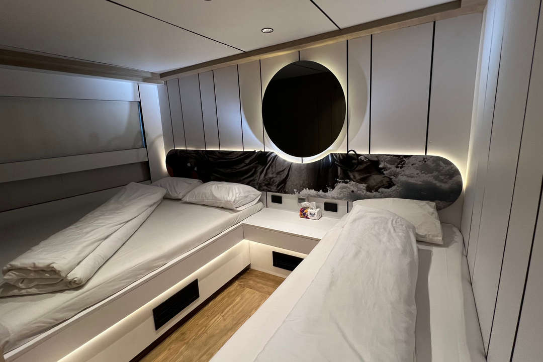 Junte-se ao iate MY Aphrodite para um fantástico safári live aboard no Mar Vermelho, Egito. Feito por mergulhadores e para mergulhadores, e acomodando até 23 hóspedes a bordo, o M/Y Aphrodite é espaçoso e moderno, com 11 cabines. No deque inferior há 6 cabines duplas de solteiro e uma cabine Master com cama queen e um pequeno sofá, e distribuídas pelos deques principal e superior há 3 cabines de casal e uma cabine familiar, ideal para 3 hóspedes. Cada cabine possui AC com controle individual, banheiro privativo e frigobar. Localizado no deque principal há um amplo salão e bar interno com sistema de entretenimento, que leva á espaçosa sala de jantar interna. Para descansar e relaxar entre os mergulhos, há 3 deques ao sol, assim como uma área externa coberta de lounge e bar.