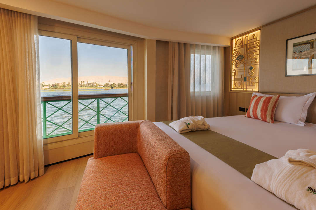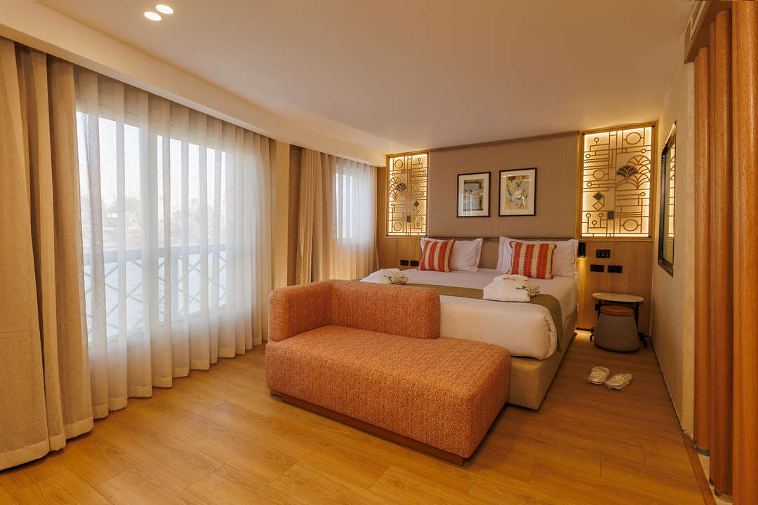 O Esmeralda Nile Cruise oferece uma experiência de navegação elegante com cabines deluxe e suítes presidenciais opulentas. Cada cabine possui móveis modernos, incluindo camas de solteiro ou king-size, uma escrivaninha e comodidades de entretenimentos como uma Tv, um frigobar e ar condicionado controlado individualmente. As suítes presidenciais possuem vistas panorâmicas do Nilo, paredes de vidro decorativos e interiores refinados.