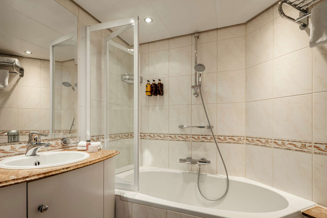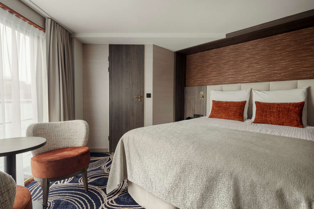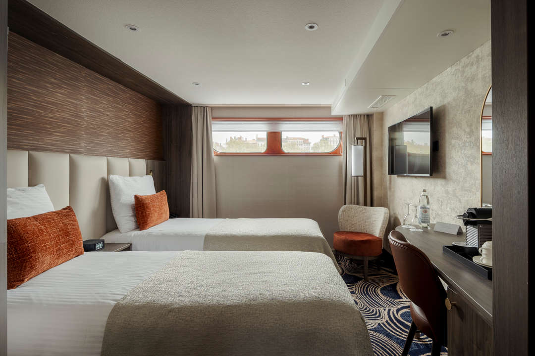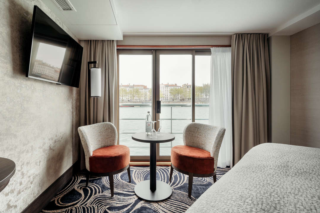 The VIVA VOYAGE welcomes up to 152 guests across 76 cabins, offering a relaxed and comfortable river cruise experience. Spread over 3 decks, cabins on the Diamond and Ruby Decks feature French balconies, while the Emerald Deck offers cozy cabins with fixed windows. Guests can choose from 15 m² twin cabins or upgrade to spacious 19 m² Junior Suites. Each cabin is equipped with a TV, a mini-bar, RITUALS® toiletries, air conditioning, a safe, and an en-suite bathroom.